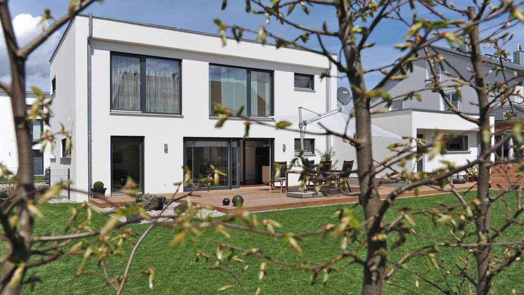 Zwei Vollgeschosse und gut 120 Quadratmeter Wohnfläche, dazu optional eine Garage mit Platz für zwei Autos und direktem Zugang zum Garten. Das erweist sich als äußerst praktisch, zumal hier auch Gartengeräte, Dreirad, Sportsachen, Fahrräder und Hängematte ihren Platz finden. All diese Dinge können so ohne Umweg entweder in den Garten oder auf die Straße gebracht beziehungsweise gerollt werden.