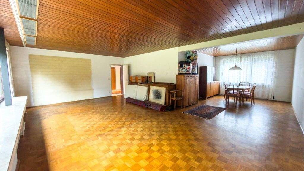 Aktuell bietet der Bungalow auf ca. 160 m² Wohnfläche viel Platz für die ganze Familie. Der durchdachte Grundriss trennt den privaten Schlafbereich geschickt vom großzügigen Wohn- und Esstrakt, der sich mit großen Fensterflächen zum weitläufigen Garten hin öffnet. Die Immobilie ist voll unterkellert und bietet im Untergeschoss ca. 140 m² zusätzliche Nutzfläche, inklusive Hobbyraum und direktem Zugang zum Garten. Eine angebaute Doppelgarage rundet das Platzangebot ab.