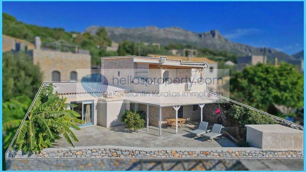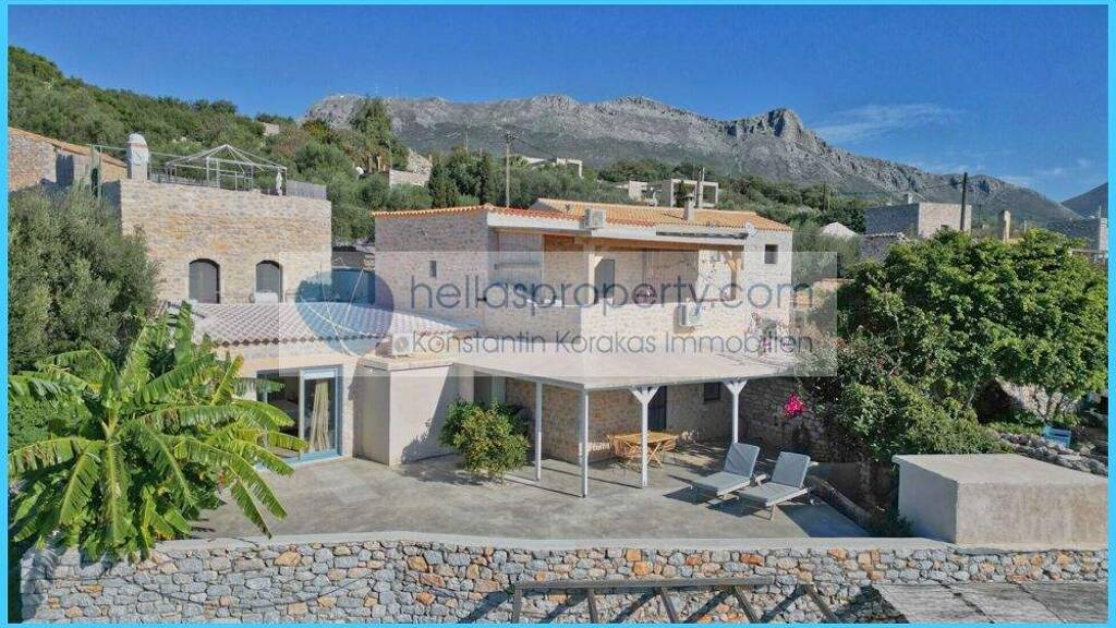 Dieses wunderschöne, freistehende Natursteinhaus mit 148 m² Wohnfläche steht zum Verkauf. Es befindet sich auf einem 350 m² großen Grundstück, nur 1.000 Meter vom Zentrum des malerischen Areopolis entfernt. Das Haus wurde 2010 und 2022 komplett renoviert, wobei der authentische Mani-Stein mit modernem Komfort kombiniert wurde.
