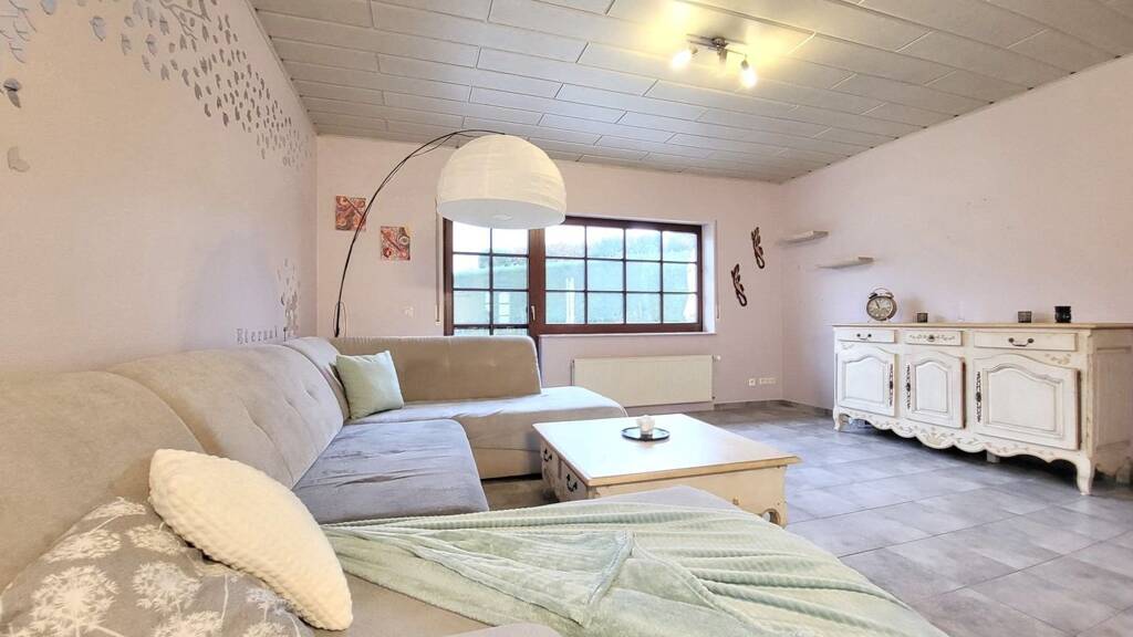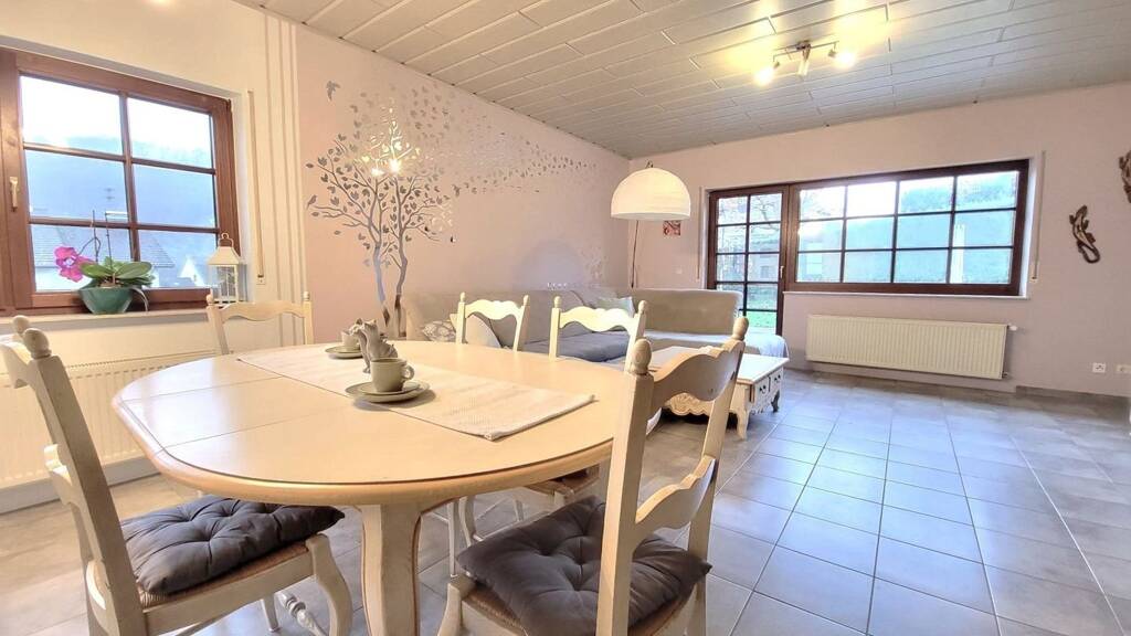 Willkommen in Ihrem neuen Zuhause in Wintersdorf, nur zehn Minuten von der Luxemburger Grenze entfernt. Die Wohnetage des Hauses beeindruckt mit einem großzügigen, offenen Wohnbereich, der durch seine helle Gestaltung und dem gemütlichen Ofen zum Wohlfühlen einlädt. Hier verschmelzen Wohn- und Essbereich mit der offenen Küche, und bieten einen herrlichen Blick in den Garten. Der Wohnraum öffnet sich direkt zur Terrasse und zum weitläufigen Garten, der durch seine Privatsphäre und Gestaltungsmöglichkeiten besticht. Ob entspannte Stunden im Grünen oder das Schaffen einer persönlichen Wohlfühloase – hier haben Sie alle Freiheiten.
