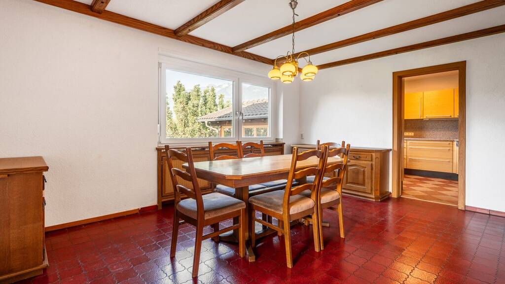 Das Haus ist bewohnbar, benötigt jedoch Modernisierungsarbeiten. Das Bad, WC sowie die Haustüre und Fenster auf der Westseite warten auf eine zeitgemäße Erneuerung. Beheizt wird aktuell klassisch mittels Öl-Heizung und Holz. Neben einem Naturkeller stehen eine praktische Waschküche sowie eine geräumige Garage zur Verfügung.