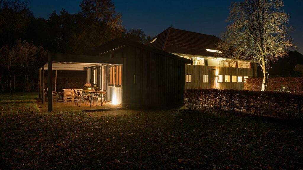 the multifunctional wooden outbuilding, built in scandinavian style and well insulated (including triple glazing), currently serves as a workshop, hobby space, and guest accommodation, but can easily be converted into a care residence (e.g. for elderly parents).