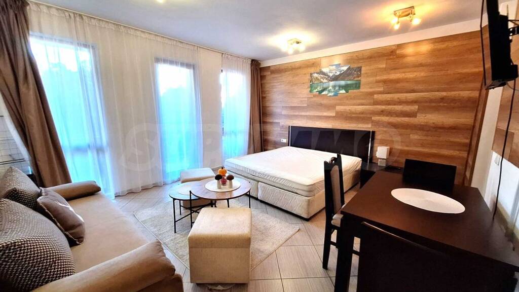 Wir präsentieren Ihnen ein wunderschönes Einzimmer-Studio-Apartment in einer der grünsten und ruhigsten Wohnanlagen in Bansko.