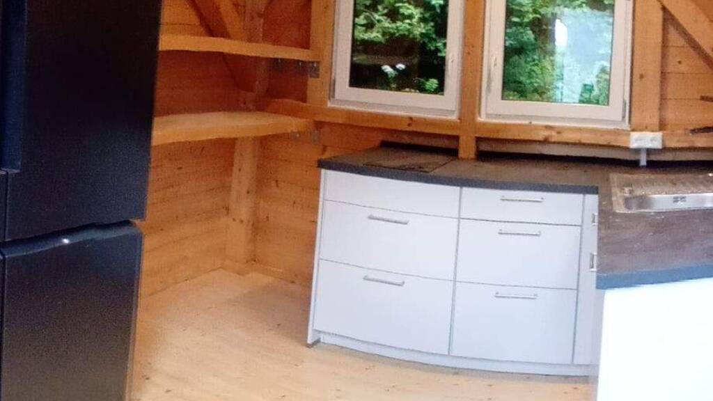 Die Küche neu gebaut und ist mit allen modernen Geräten ausgestattet, einschließlich Kühlschrank und Spülmaschine.
