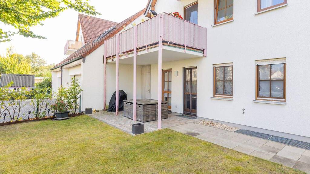 + Für Ihre Entspannung draußen: Zwei gepflegte Gartenflächen mit jeweils eigener Terrasse und viel Privatsphäre durch Umzäunung