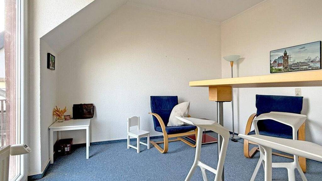 Fahrradraum, Nutzfläche: 16,60 m², Anzahl der Schlafzimmer: 2, Anzahl der Badezimmer: 1, modernisiert: Sanierung des Hauses: 1990. Dachausbau, Fenster Dämmung Außenwände 1995 Sanierung nach Brand 2001: neues Dach, neue Elektrik im ganzen Haus, Whg Komplettrenovierung ?2019: alle Fenster in der Wohnung neu, bis auf die zwei im Mittelzimmer 2023: Hofeinfahrt der Straße bis zu den Parkplätzen gepflastert 2026 beauftragt Abdichtung Machterrasse neu, Malerarbeiten in Whg. 3 nach kleinem Wasserschaden Geplant für 2026: Treppenhaus: neuer Teppich auf Treppe