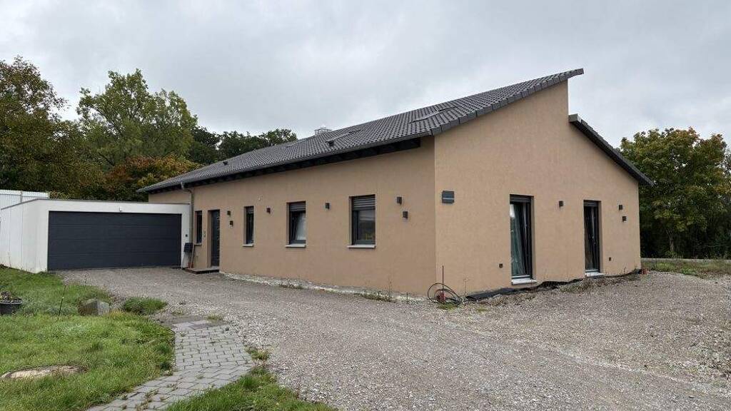 Der 2023 neu errichtete Bungalow mit versetztem Pultdach befindet sich in einer angenehmen Wohnlage. Das moderne Wohnhaus steht auf einem ca. 758 m² großen Grundstück und überzeugt durch seine hochwertige Ausstattung, eine durchdachte Raumaufteilung sowie zahlreiche Komfortmerkmale für modernes Wohnen - ca. 149 m² Wohnen auf einer Ebene.