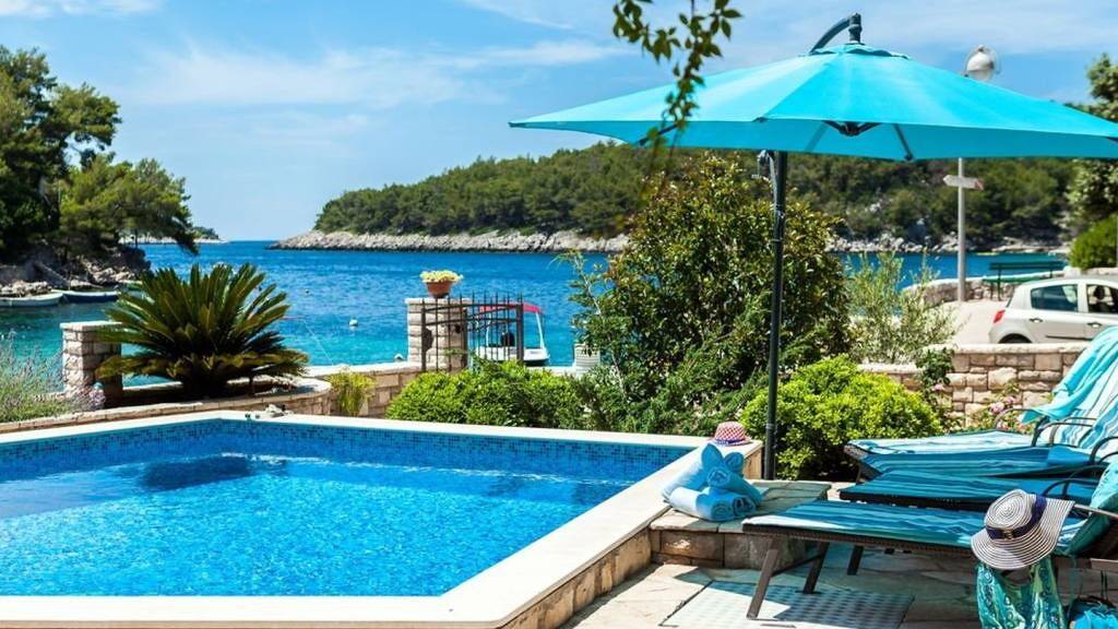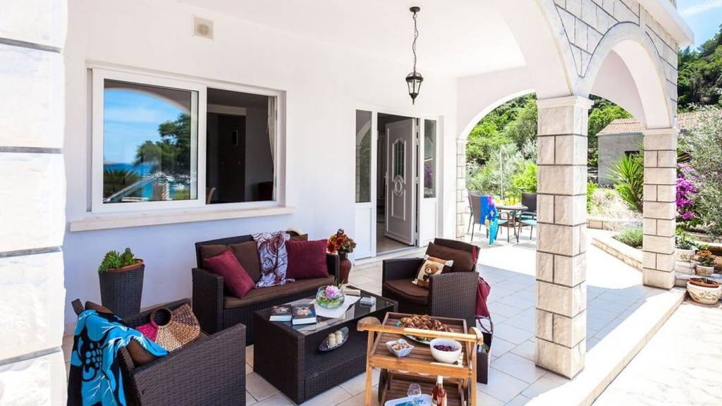 Zu verkaufen schöne dreistöckige Villa in erster Reihe zum kristallblauen Meer, gelegen in einer ruhigen Bucht auf der Südseite der Insel Korcula. Das Erdgeschoss umfasst ein offenes Wohnzimmer mit Küche und großem Esszimmer sowie einen Flur, der zu vier gemütlichen Schlafzimmern und zwei Badezimmern führt. Außerdem befindet sich auf dieser Etage auch ein Spielzimmer, ausgestattet mit Tischtennis, Billard, Dart und Soundsystem. Vom Wohnzimmer gibt es einen Ausgang zur großen offenen Terrasse, wo Sie viel Sonnenschein genießen können. Im ersten Stock befindet sich eine Wohnung mit Flur, großem Wohnzimmer, Küche mit Esszimmer, dann drei Schlafzimmern und zwei Bädern. Wohnzimmer hat Zugang zur Terrasse mit herrlichem Meerblick. Die letzte Etage ist noch nicht vollständig fertiggestellt, aber es ist geplant, eine Zwei-Zimmer-Wohnung zu werden. Nach der Fertigstellung würde diese Wohnung ein Wohnzimmer, eine Küche mit Esszimmer, zwei Schlafzimmer und ein Badezimmer haben. Diese Wohnung würde sich im Dachgeschoss mit Dachschräge befinden und hätte eine eigene überdachte Terrasse mit herrlichem Meerblick. Der Hof ist gut gepflegt und der Garten ist mit Palmen, Olivenbäumen und mediterranen Pflanzen bepflanzt, die eine Kombination aus Privatsphäre und Entspannung bieten. Auf dem Gelände befinden sich auch ein Swimmingpool mit Sonnendeck und Außendusche, ein Grill und ein Essbereich im Freien, der sich ideal für gemütliches Beisammensein im Sommer eignet. Die gesamte Villa ist von einer Steinmauer umgeben, die ein Gefühl von Sicherheit und Privatsphäre vermittelt. Die Villa verfügt über mehrere nicht überdachte Parkplätze für Autos. Beim Bau wurden hochwertige Materialien (Stein, Beton, Eisenzaun, PVC-Zimmerei) und hochwertige Technologie verwendet. Die Villa ist vollklimatisiert, der Innenraum in den ersten beiden Stockwerken ist mit modernen Möbeln ausgestattet und es wurde darauf geachtet, die Villa so in die bestehende Umgebung einzupassen, dass ein Teil der Fassade mit Stein verkleidet ist.