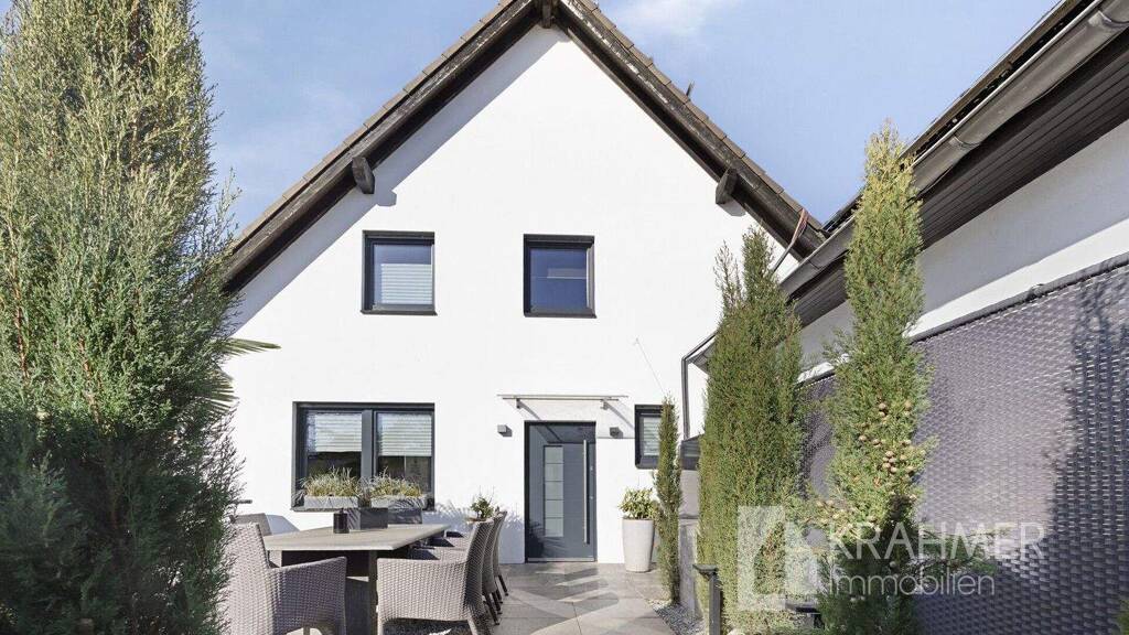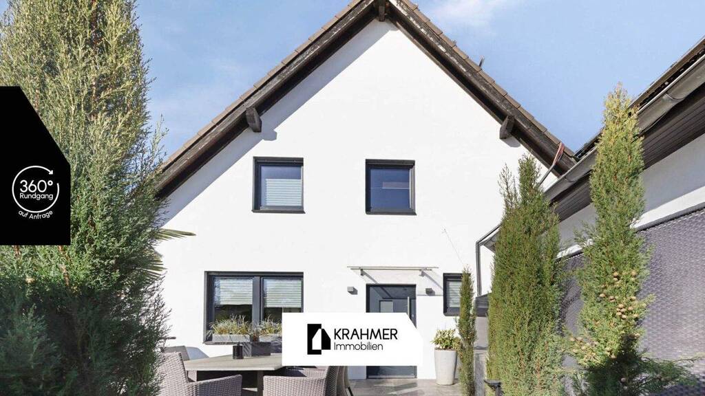 - Ruhige Sackgassenlage in Meerbusch-Lank-Latum - Versetzt angebautes Doppelhaus - Ca. 103 m² Wohnfläche - Ca. 368 m² Grundstücksanteil - Umfassend modernisiert - Hochwertige, moderne Ausstattung - Offener Wohn-/Essbereich mit Küche - Einbauküche mit Markengeräten inklusive - Zwei große Terrassen in Ost- und Westausrichtung - Energieeffizienzklasse A+ - Luft-/Wasser-Wärmepumpe - PV-Anlage mit Netzeinspeisung - Aktuell ca. 185 € mtl. Einnahmen aus Stromeinspeisung - 3-fach verglaste Fenster - Elektrische Rollläden - Modernes Bad - Gäste-WC - Wohnlich ausgebautes Dachgeschoss - Hauswirtschaftsraum mit Terrassenzugang - Gartenbereich - Pool vorbereitet - Außenstellplatz (Umwandlung in Garage voraussichtlich möglich)