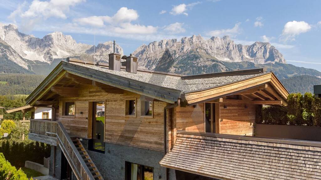 In ruhiger, sonniger leichter Hanglage in einer Sackgasse mit traumhaften Panoramablick und unmittelbarer Skipistenanbindung befindet sich dieses hochwertige Chalet mit atemberaubenden Ausblick auf den Wilden Kaiser.