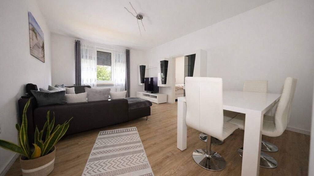 Die 3-Zimmer-Wohnung befindet sich im 1. Obergeschoss eines gepflegten Wohn- und Geschäftshauses in Neusäß. Sie präsentiert sich in einem neuwertigen Zustand und wurde in weiten Teilen modernisiert. Die Grundrissgestaltung ist klar und funktional. Drei gut geschnittene Zimmer bieten flexible Nutzungsmöglichkeiten - ob als Wohn- und Essbereich mit zwei Schlafzimmern oder als Kombination aus Wohnen, Schlafen und Arbeiten. Ergänzt wird die Wohnung durch eine separate Küche, die räumlich vom Wohnbereich getrennt ist. Das Badezimmer ist modern ausgeführt; zusätzlich steht ein separates WC zur Verfügung, was den Alltag spürbar erleichtert. In den Wohnräumen wurde ein hochwertiger Eichenholz-Vinylboden verlegt. Die Bäder sind mit Steinfliesen ausgestattet. Elektroinstallation und Heizkörper entsprechen einem zeitgemäßen Standard. Große Fensterflächen sorgen für eine gute natürliche Belichtung und ein angenehmes Raumgefühl. Ein wesentlicher Bestandteil der Wohnung ist die ca. 24 m² große Dachterrasse, die über wenige Stufen erreichbar ist. Durch ihre Ost-Süd-West-Ausrichtung ist sie über weite Teile des Tages nutzbar. Zusätzlich verfügt die Wohnung über einen weiteren Balkon.