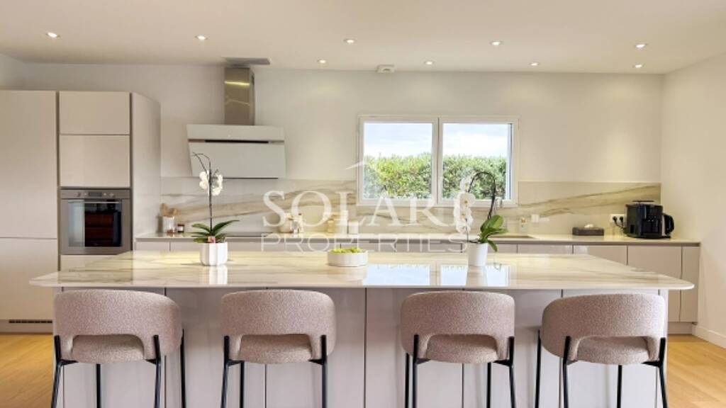 On the ground floor, you can discover a large living room with an open-plan kitchen overlooking a beautiful pool area, as well as a large master bedroom with a dressing room, a shower room, and an office, all opening onto a private terrace.