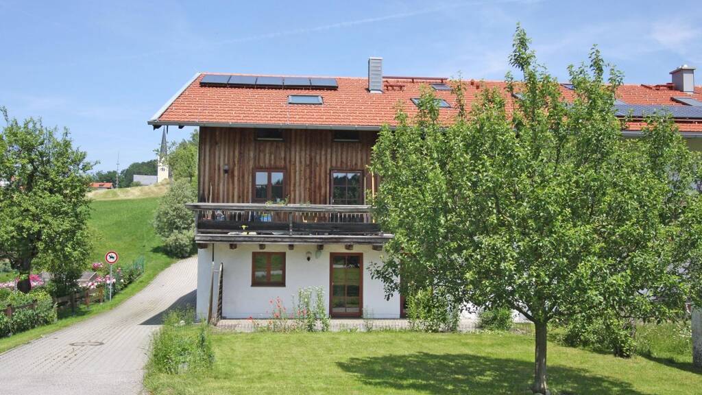 In der Chiemsee-Gemeinde Rimsting liegt die ehemalige Hofstelle in idyllischer Alleinlage an einem Südhang. Der zum Verkauf stehende, nicht unterkellerte Gebäudeteil im Südwesten ist 1996 auf einer Grundstücksfläche von 985 m² mit einer Wohnfläche von insgesamt 312 m² neu entstanden und die Abgeschlossenheitsbescheinigung für das Erdgeschoss und Obergeschoss erteilt worden. Der zum Verkauf angebotenen 3-Zimmer Erdgeschosswohnung mit 112 m² Wohnfläche ist ein ca. 200 m² großer Südgarten zum Sondereigentum zugeteilt. Sämtliche Wohnräume sind nach Süden und Westen ausgerichtet. Der Wohnraum und die Küche führen auf die 23 m² große Südterrasse und geben den Blick frei auf den am Haus vorbeiführenden Apfelweg der Gemeinde Rimsting. Die Lärchenholzverschalung und die Balkone im Norden und Süden bestimmen das Fassadenbild. Lärchenholz setzt sich nach innen mit isolierverglasten Holzfenstern und Holzinnentüren fort. Die gesamte Wohnung verfügt durchgängig über eine Fußbodenheizung und ist mit Fliesen ausgestattet. Neben dem großzügigen Bad mit Badewanne, Dusche Doppelwaschbecken und WC ist zusätzlich ein Gäste-WC vorhanden. Zur Wohnung gehört ein 11 m² großes Kellerabteil, das Teil der Unterkellerung der dem Wohnhaus gegenüberliegenden, komplett in den Hang gebauten Kellerräume und dem Tankraum ist. Eine Garage, ein Carport-Stellplatz und ein Stellplatz mit installierter Wallbox sind im Kaufpreis enthalten.