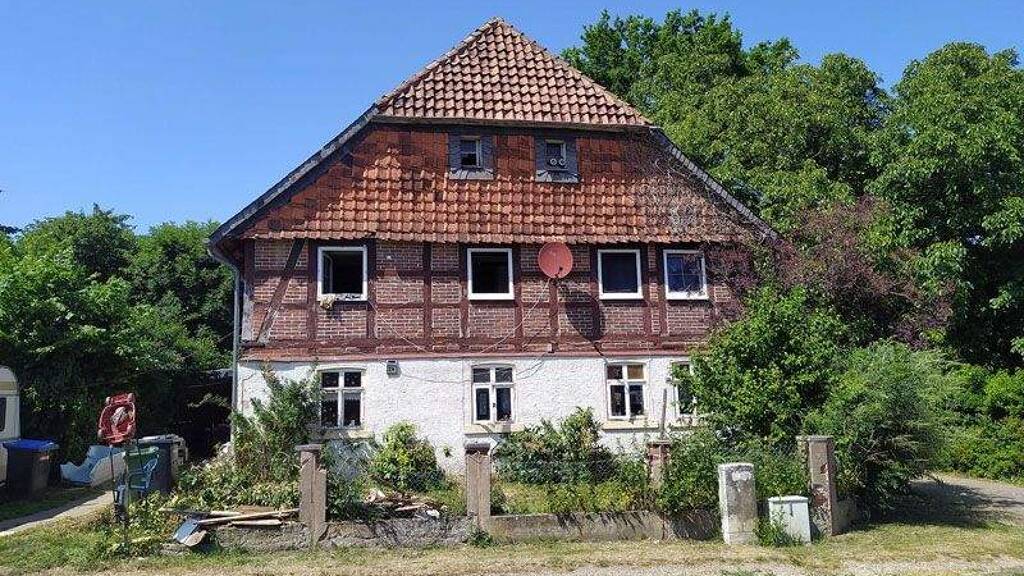 Das alte Fachwerk-Zweifamilienhaus mit 2 Garagen und Schuppen steht in einem Ortsteil von Ilsede auf einem groĂźen GrundstĂĽck.