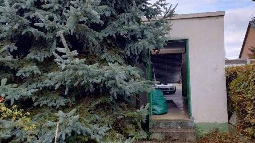Die ebenfalls massiv errichtete Garage bietet nicht nur ausreichend Platz zum Abstellen eines PKW, sondern auch zur Unterbringung von Fahrrädern oder Gartengerät; sie verfügt außerdem über eine Werkstattgrube.