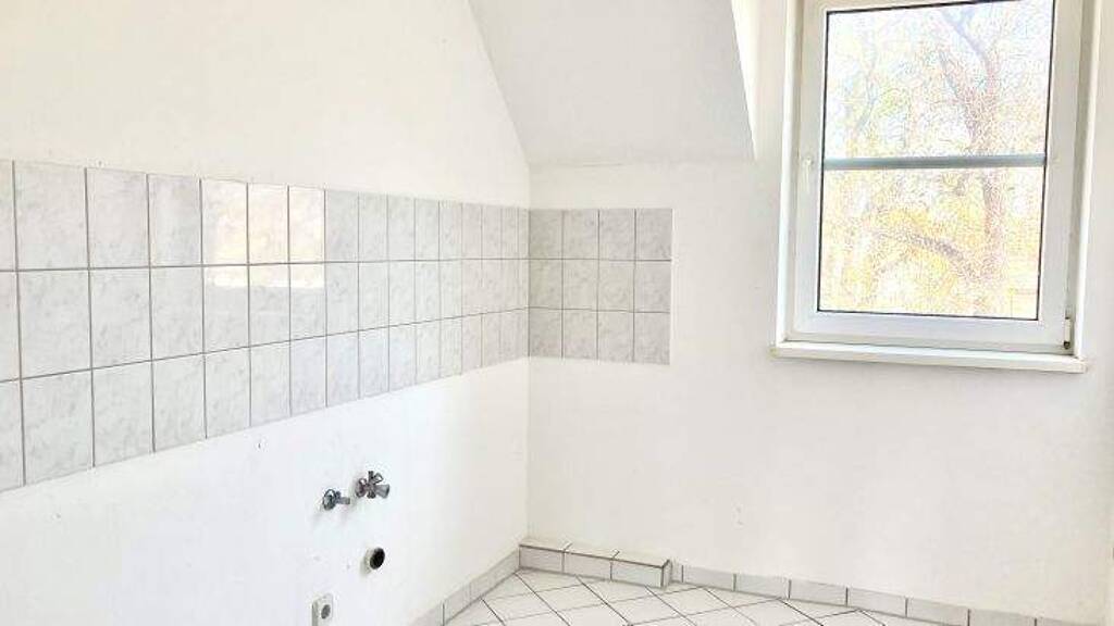 - Bodenbelag im Flur, der Küche und im Badezimmer: Weiße Fliesen