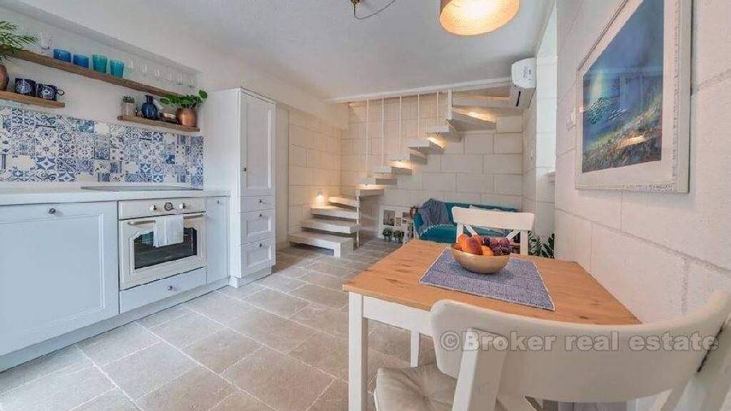 Dieses wunderschön renovierte Steinhaus befindet sich nur 100 Meter von der Riva und der Marmontova-Straße entfernt. Das Gebäude wurde vor einigen Jahren komplett saniert (Installationen, Dach etc.) und dabei ausschließlich hochwertige Materialien, insbesondere Brac-Stein, verwendet.