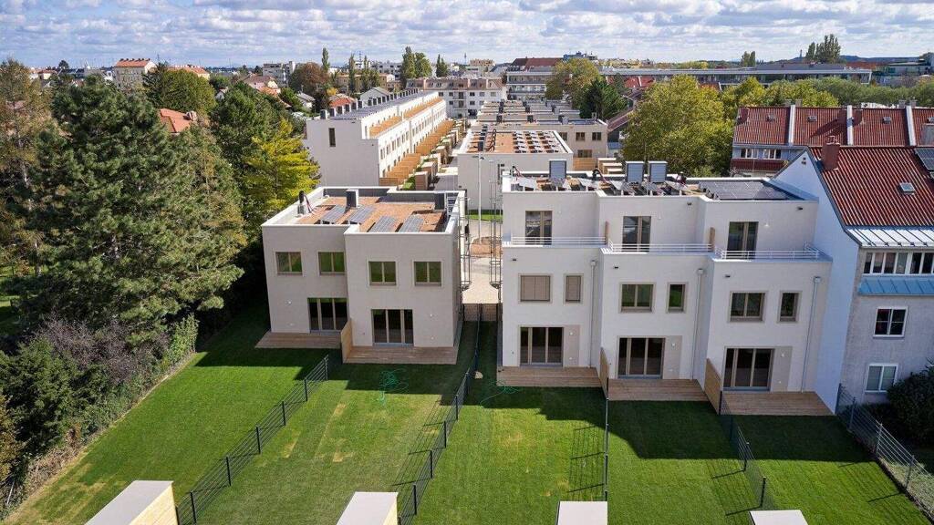 Diese Reihenhausanlage erstreckt sich auf einem großzügigen Areal von ca. 10.000 m² zwischen der Brünner Straße und der Jedlersdorfer Straße. Zum Verkauf stehen zahlreiche freifinanzierte Reihenhäuser mit Eigengarten und Terrasse und einer Wohnnutzfläche von ca. 112 m² bis ca. 127 m². Je nach Grundrissart und Haustyp variiert die Größe sowie die Anzahl der Garten- und Terrassenflächen.