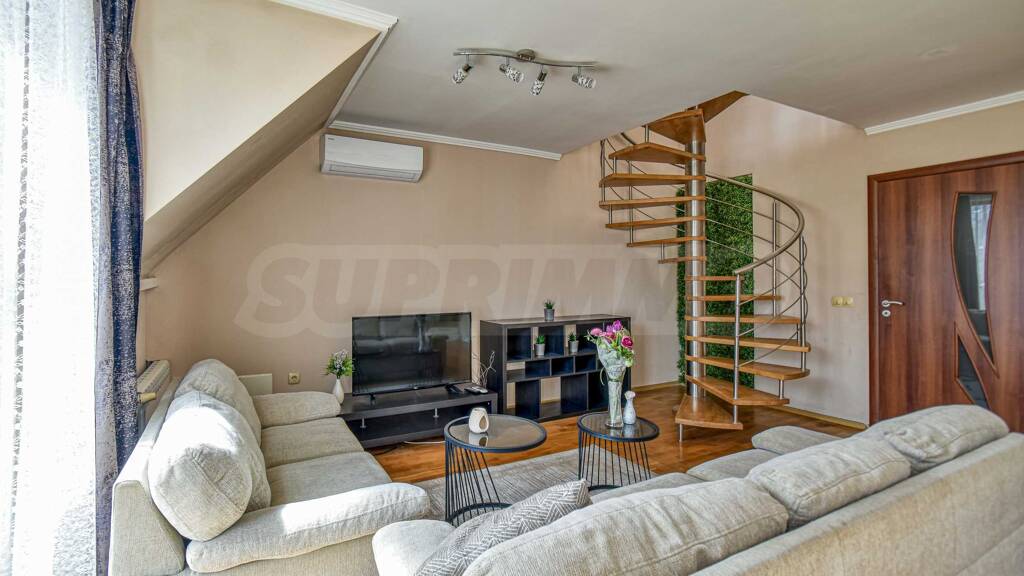 Wir präsentieren Ihnen eine Maisonette-Wohnung mit drei Schlafzimmern in einem 2009 erbauten Komplex, der sich durch professionelle Sicherheit und einen schönen, gepflegten Garten auszeichnet und ein Gefühl von Komfort und Sicherheit vermittelt. Es beherbergt auch das luxuriöse Restaurant PROYA, das eine außergewöhnliche Atmosphäre und köstliche Küche bietet. Von den Terrassen der Maisonettewohnung bieten sich beeindruckende Ausblicke auf das Witoschagebirge und die Hauptstadt Sofia.
