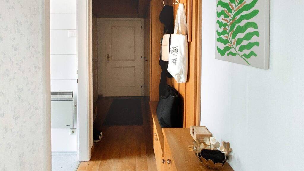 Man betritt die Wohnung über einen Vorraum. Von hier aus sind das separate WC, die Küche sowie das Wohnzimmer direkt erreichbar .