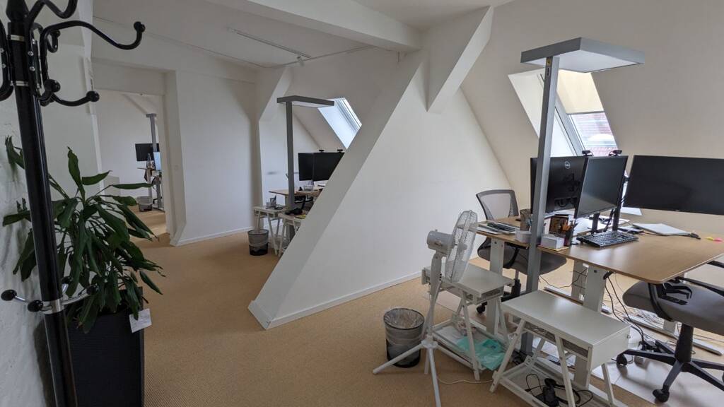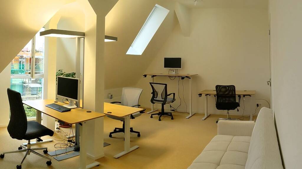 - Möbliert, zwischen 16-45 Quadratmetern (Bürostühle, elektrisch höhenverstellbare Tische, elektrische Rollos)