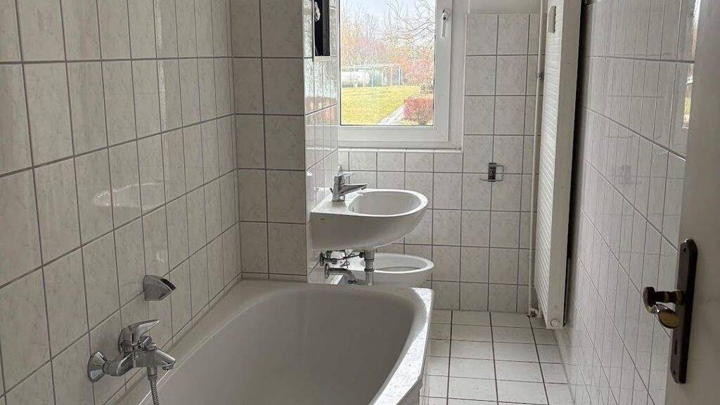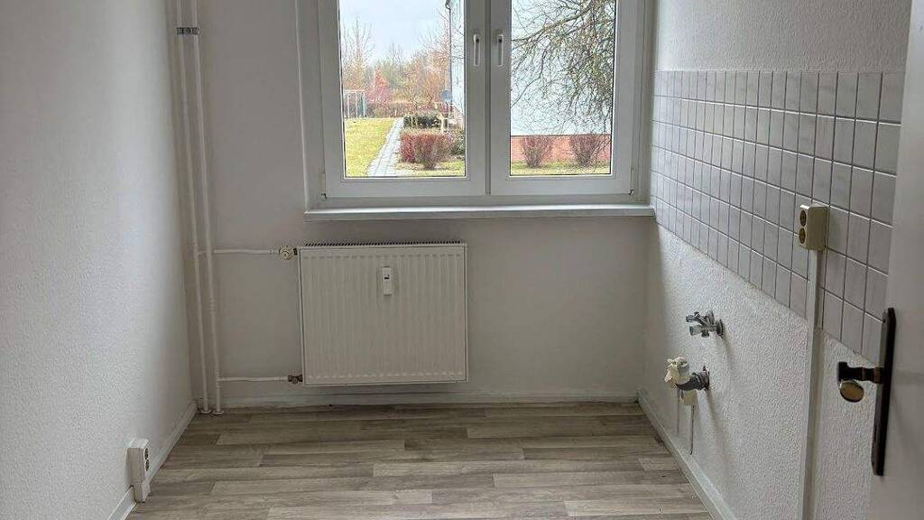 Merkmale * Rauhfaser weiß * PVC- Belag in Holzoptik * Balkon * gefliestes Wannenbad * Küche mit Fliesenspiegel * Türsprechanlage * Fernwärme * Keller