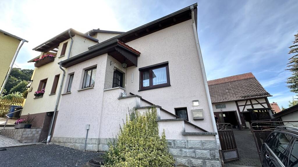 Zum Verkauf steht eine einladende Doppelhaushälfte aus dem Jahr 1933 in 98617 Meiningen/Stepfershausen in Thüringen. Das Anwesen umfasst ein Wohnhaus, das sich über zwei Etagen erstreckt, sowie eine Scheune und einem Garten.