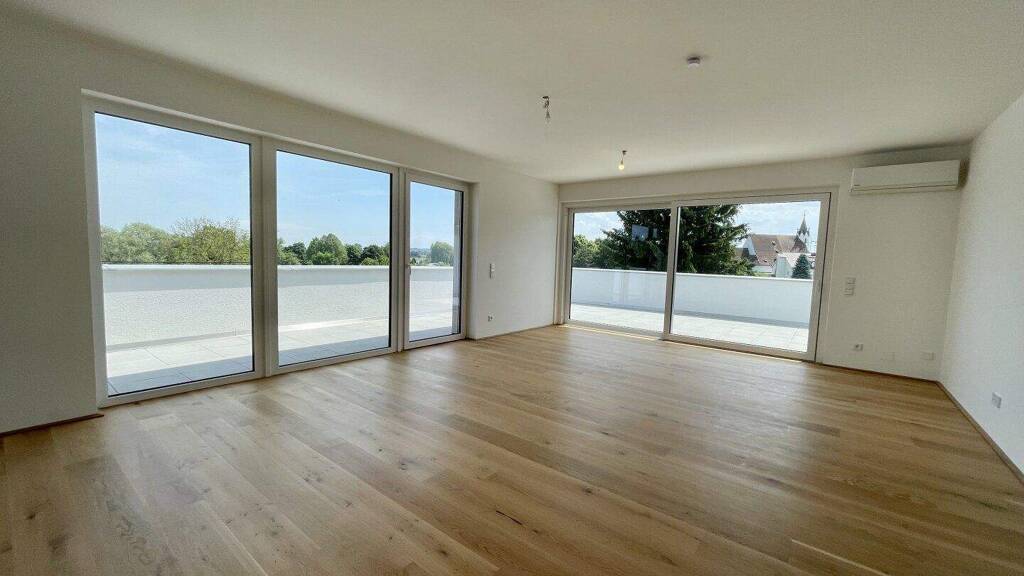 Die ca. 107,90m² große Wohnung mit einer großzügigen ca. 45,37m² Dachterrasse verfügt über 4 hochwertig ausgestattete Zimmer mit Fußbodenheizung. Die freundlich, hellen Räume rücken die großartige Wohnung ins optimale Licht und machen die Immobilie besonders lebenswert. Durch die großen Fensterfronten und die weitläufige südostseitig ausgerichtete Dachterrasse genießen Sie einen wunderbaren und atemberaubenden Ausblick ins Eferdinger Grünland. Eine smarte Raumgestaltung spricht für das Objekt. Die großzügige Wohnküche mit Zugang zur Terrasse bietet viel Platz zum Verweilen. Das Schlafzimmer ist Ihr Platz für Zweisamkeit. 2 weitere Zimmer stehen für 2 Kinder zur Verfügung oder können auch als Büros & Hobbyräume genutzt werden. Das Bad wurde zudem mit einer Duschkabine ausgestattet. Die Wohnung bietet somit genügend Platz für modernen Familienalltag und kann sehr flexibel genutzt werden. Durch die Räume ziehen sich außerdem hochwertiges Parkett und Fliesen. Beheizt wird durch Fernwärme. Zur Wohnung zählen des Weiteren ein eigenes Kellerabteil sowie ein großer Parkplatz mit Option auf E-Lade Anschluss.
