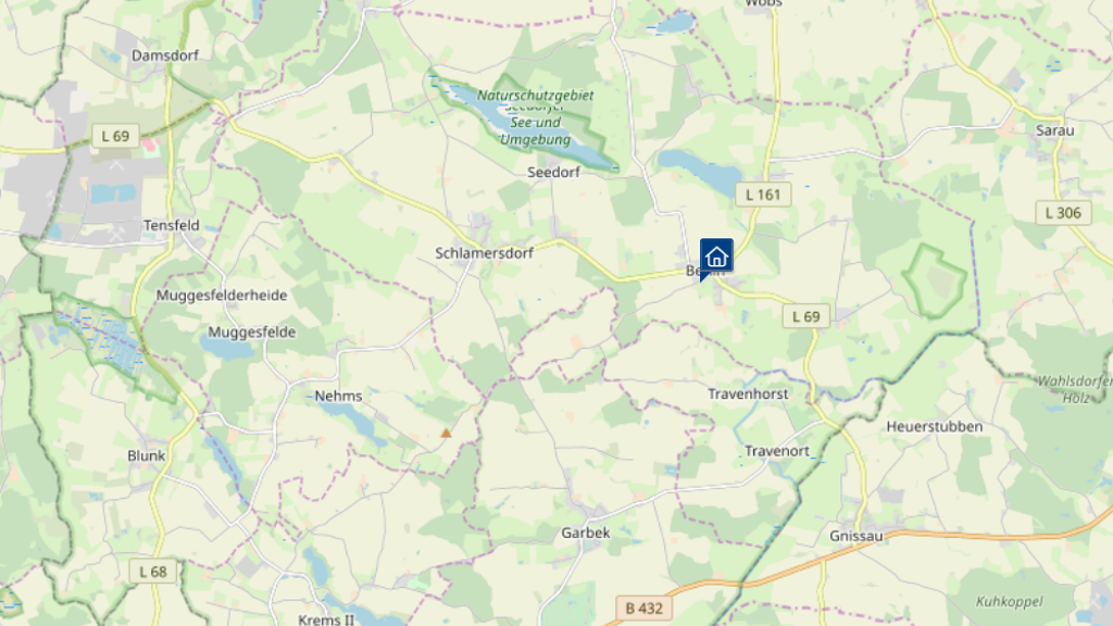 Auch die Gemeinde Seedorf im Kreis Segeberg in Schleswig-Holstein hat ein Berlin zu bieten. Der Ortsteil mit ca. 600 Einwohnern gilt als das älteste Berlin der Welt. Die Immobilie befindet sich in zentraler Dorflage in einer gewachsenen Wohnsiedlung mit lagetypischer Einfamilienhausbebauung. Das Dorf Berlin liegt zwischen Bad Segeberg und Eutin nahe der B432, die Ostsee ist in ca. 30 Minuten mit dem Auto erreichbar.