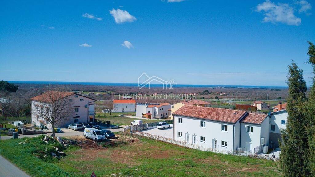 In erhöhter Lage mit herrlichem Meerblick, in der Nähe von Porec, befindet sich dieses Baugrundstück mit Baugenehmigung für ein Wohngebäude mit vier Wohnungen.