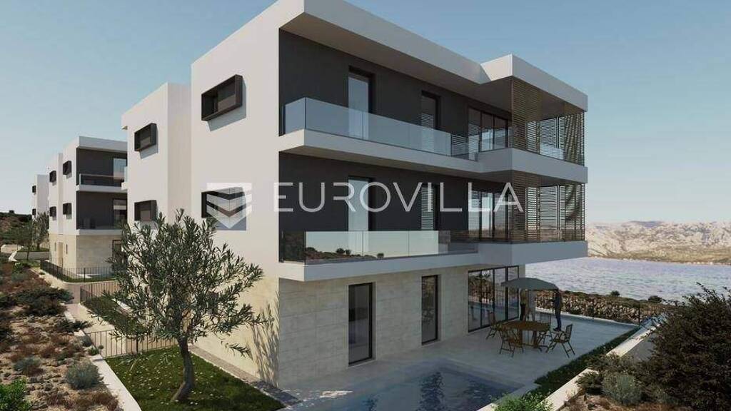 Predstavljamo Vam moderan apartman u sklopu novog projekta sa 6 stambenih jedinica, smjestenog u mirnom i autenticnom dalmatinskom mjestu Vinjerac, na odlicnoj lokaciji svega 100 metara od mora i 450 metara od plaze.Stan A3 - 1. KAT - 95,75 m2Ukupna povrsina apartmana iznosi 95,75 m2, od cega je stambena povrsina 71,42 m2, dok natkrivena loggia iznosi 29,10 m2.Sastoji se od:otvorenog prostora dnevnog boravka, blagovaonice i kuhinjedvije spavace sobemoderne kupaoniceprostrane natkrivene loggie okrenute prema zapaduPlanirani zavrsetak gradnje je sijecanj 2027. godine.Od opreme i tehnickih karakteristika izdvajamo:3 unutarnje jedinice za klimatizaciju -2 kW klima jedinice u spavacim sobama i 4 kW klima jedinica u dnevnom boravkugrijanje i hladenje putem dizalice toplineelektricno podno grijanje u kupaoniciProtuprovalna i protupozarna ulazna vrataVinjerac je jedno od najsarmantnijih mjesta zadarskog priobalja, poznat pokristalno cistom moru i prekrasnim pogledima na Velebit. U blizini se nalaze Nacionalni park Paklenica, a Zadar je udaljen 20ak km.Za vise informacija i dogovor oko razgledavanja, slobodno nam se obratite.... Vise na eurovilla.hr, ID: 820109