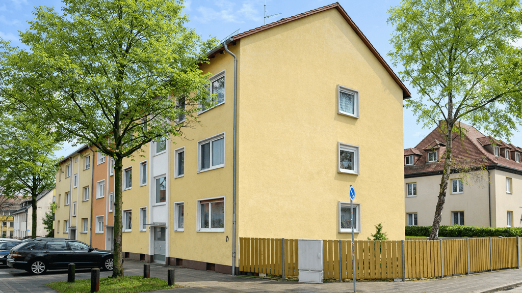 Die Lage dieser Immobilie in Nürnberg-Schweinau bietet eine hervorragende Verbindung zu öffentlichen Verkehrsmitteln und wichtigen Zielen. Ein Fußweg von nur 3 Minuten bringt Sie zur nächsten Haltestelle "Hohe Marter" was eine bequeme und schnelle Fortbewegung ermöglicht. Der Nürnberger Hauptbahnhof ist lediglich 10 Fahrminuten entfernt, ideal für Pendler und Reisende. Der nächste Flughafen ist in nur 23 Fahrminuten erreichbar, was Reisen sowohl national als auch international äußerst unkompliziert macht. Nürnberg-Schweinau selbst ist ein lebendiger Stadtteil mit einer Mischung aus Wohn- und Gewerbeflächen, Grünanlagen und lokaler Infrastruktur, der ein angenehmes Wohnumfeld bietet.