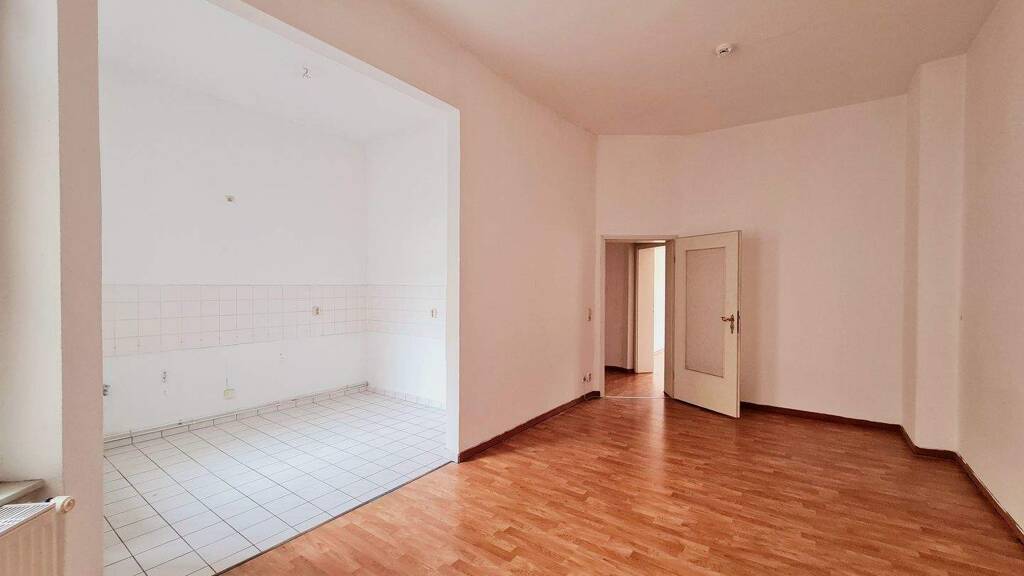 Diese gepflegte 3-Raum-Wohnung besticht durch einen durchdachten Grundriss und helle, freundliche Räume, die vielseitige Nutzungsmöglichkeiten bieten. Mittelpunkt der Wohnung ist die offene Küche mit anschließendem Wohnbereich - ideal für gemütliche Abende, gemeinsames Kochen und geselliges Beisammensein. Das Wohnzimmer fungiert als Durchgangszimmer und verbindet den Wohn-Ess-Bereich harmonisch mit dem möglichen Kinder- oder Arbeitszimmer. Auf der anderen Seite des Flures befindet sich noch ein großes helles Zimmer, welches als Schlafzimmer dient.