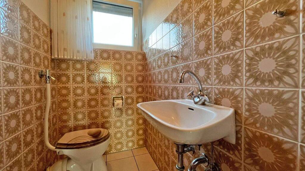 Der Gartenbereich, der derzeit noch Gemeinschaftseigentum ist, erweitert die Nutzungsmöglichkeiten im Freien zusätzlich. Die Wohnung verfügt über ein Tageslichtbad mit Badewanne, Dusche und Fenster sowie ein separates Gäste-WC, ebenfalls mit Fenster. Beide Badezimmer präsentieren sich aktuell noch im charakteristischen Stil der 1970er Jahre.