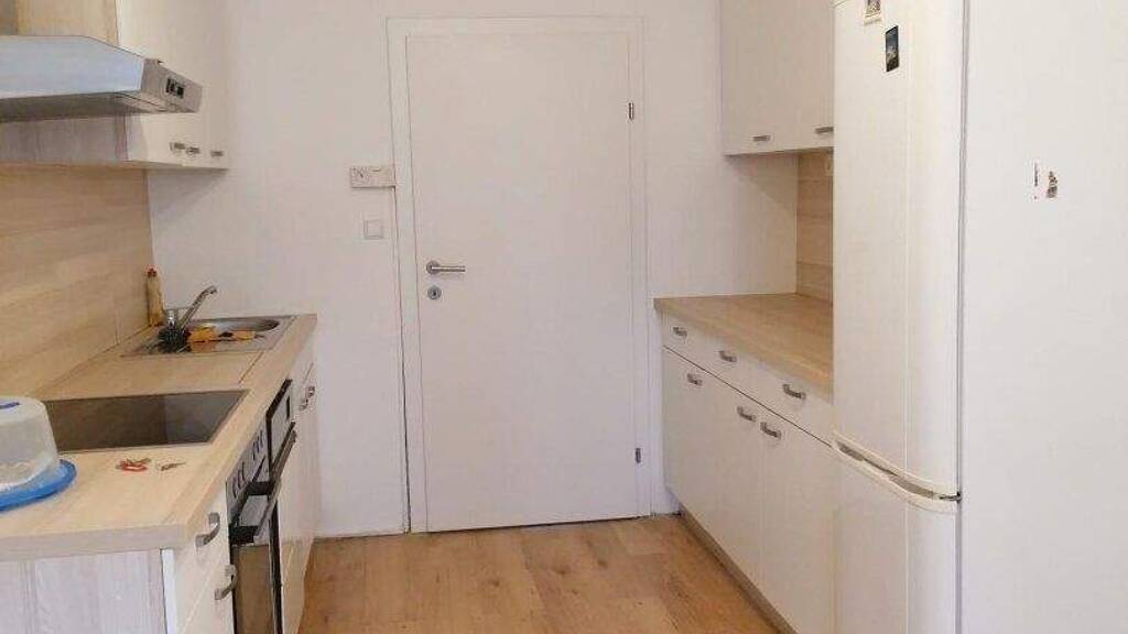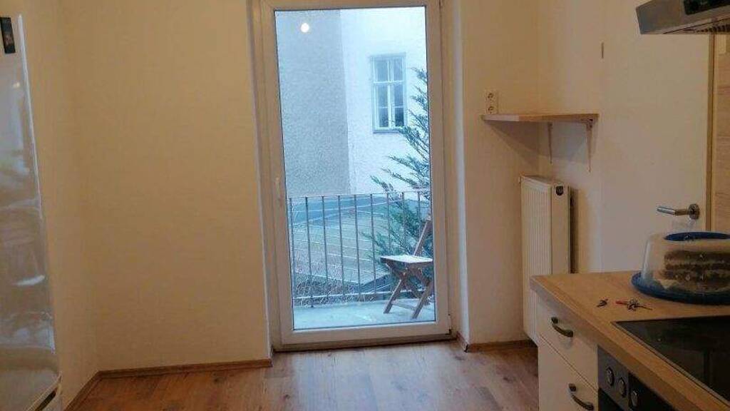 Die separate Küche bildet einen zentralen Treffpunkt der Wohnung und ermöglicht dort einen direkten Zugang zum Balkon.