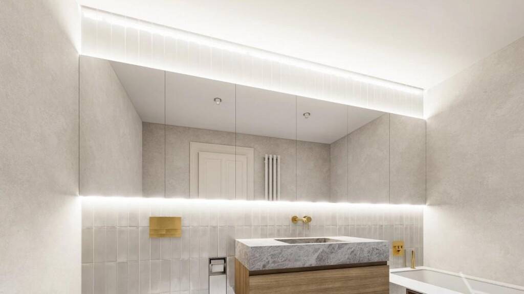 Die Wohnung ist im Fit-Out-Standard, sie ist bis auf die Endoberflächen inklusive Sanitärkeramik ausgebaut.