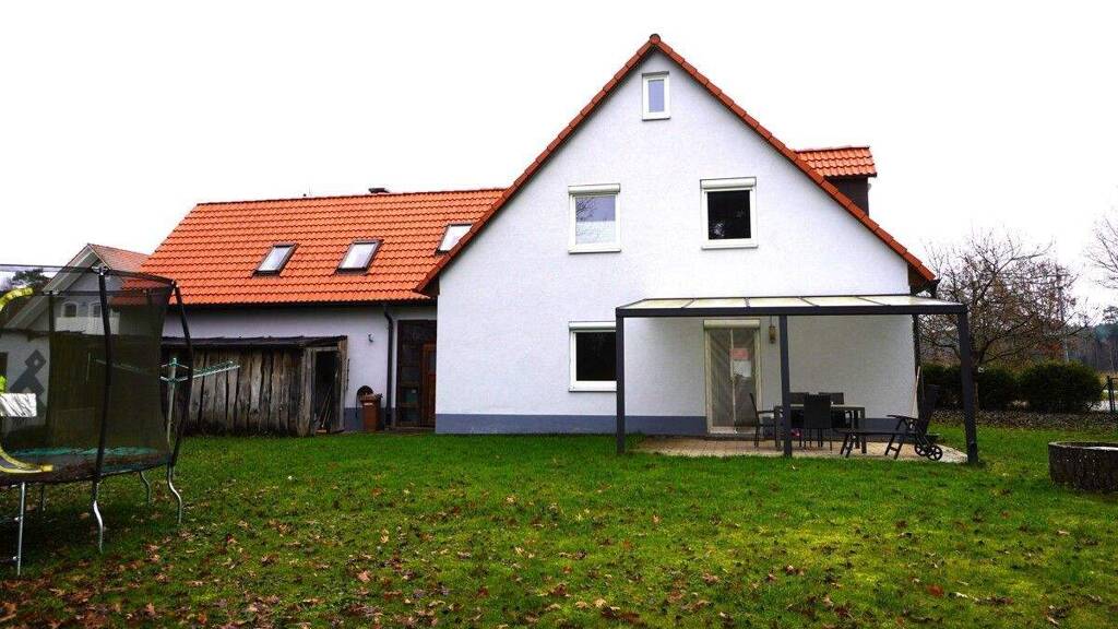 Dieses 1-Familien-Haus mit ca. 153 m² ist aufgeteilt auf ein großzügiges Erdgeschoss mit Wohn- und Esszimmer inkl. eines gemütlichen Kachel-Kaminofens, einer offenen Küche mit Abstellraum, ein Arbeitszimmer und ein Gäste-WC. Vom Wohnzimmer aus ist die überdachte Terrasse und der Garten erreichbar. Das ca. 56,85 m² große Nebengebäude bietet vielseitige Nutzungsmöglichkeiten und verfügt über einen ausgebauten Dachbereich mit separatem WC. Es ist über den im Hauptgebäude befindlichen Hauswirtschaftsraum direkt und komfortabel angebunden. Im Wohnhaus ist das ausgebaute Dachgeschoss über die im Flur befindliche Treppe begehbar. Hier befinden sich ein Schlafzimmer sowie zwei Kinderzimmer und das moderne, neu renovierte Tageslichtbad mit Dusche und Badewanne. Jeder Raum im Hauptgebäude verfügt über eine angenehme Fußbodenheizung für optimalen Wohnkomfort. Ein weiteres Highlight sind die Dachkollektoren, die eine effiziente Warmwasserbereitstellung ermöglichen und zur Senkung der Energiekosten beitragen. Das gesamte Anwesen präsentiert sich in top gepflegtem Zustand und ist sofort bezugsfertig - ohne jeglichen Renovierungsbedarf.