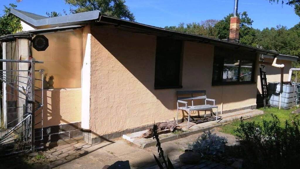 Paradies für Naturliebhaber-das großzügige Grundstück mit einer Gesamtfläche von 3.348m² bietet ein einzigartiges Ensemble aus einem kernsanierten Bungalow mit 65m² und einem teilweise sanierten Bungalow mit 87,66 m² sowie Nebengelass von 32,34m². Diese werden als Büro genutzt.