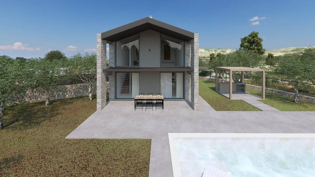 Im Außenbereich verfügt jede Villa über einen privaten Pool (24?m²), einen Grillplatz, einen schön angelegten Innenhof, schattige Pergolen und zwei private Parkplätze – ideal zum Entspannen oder zum Bewirten von Gästen unter der kretischen Sonne.