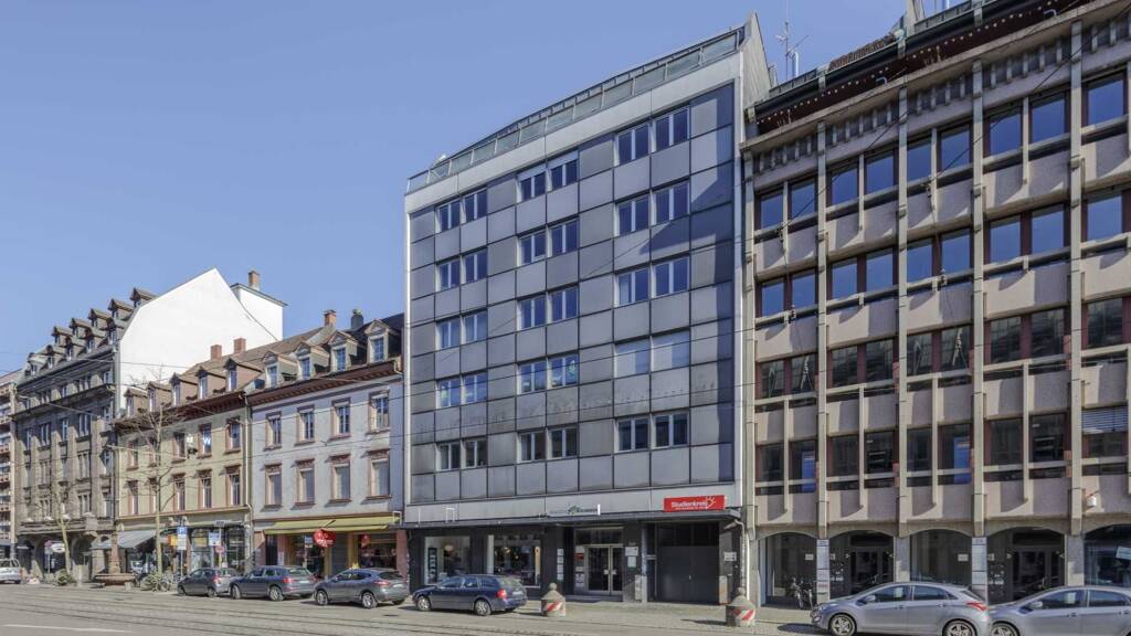 Die Gewerbefläche befindet sich direkt in der Freiburger Haupteinkaufsstraße, der Kaiser-Joseph-Straße, in zentraler Innenstadtlage. Ihr Klientel und Ihre Mitarbeiter werden den direkten Straßenbahnanschluss und die unmittelbare Nähe zur B31, mit schneller Anbindung an die A5, sehr zu schätzen wissen. Das Martinstor, der Eingang zum Freiburger Altstadtkern, ist ein paar Gehminuten entfernt. Das Gebäude befindet sich an einer Stelle in der Kaiser-Joseph-Straße, außerhalb der Fußgängerzone, die immer befahren werden kann.