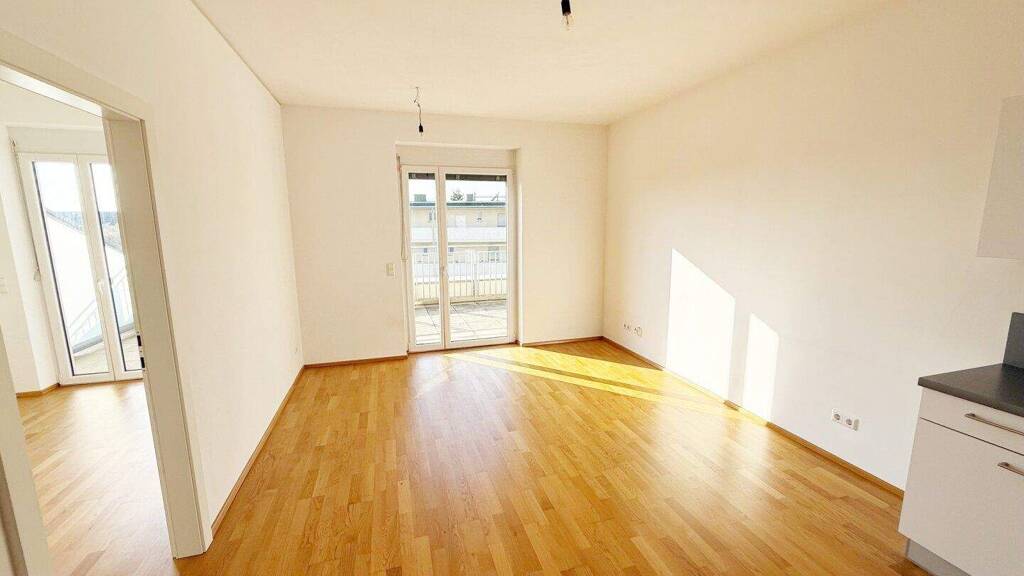 Raumaufteilung: + Wohnraum mit integrierter Küche und Ausgang auf die Terrasse + 1 Zimmer mit Ausgang auf die Terrasse + Bad mit Dusche, Toilette und Fenster + Vorraum + Terrasse (ca. 18 m²)
