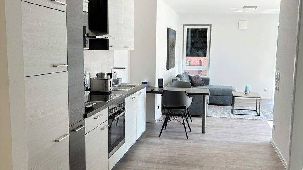 Die Wohnung liegt im ersten Geschoss eines Mehrfamilienhauses und verfügt über eine Wohnfläche von 66,69m². Vom Flur aus gelangen Sie in alle Räumlichkeiten der Wohnung. Die Wohn-Küche bietet ausreichend Platz zum Wohnen, Speisen und Kochen. Eine hochwertige Einbauküche wurde bereits Vermieterseits eingebaut. Der Wohnbereich ermöglicht Ihnen zudem Zugang zum geräumigen Balkon. Des weiteren verfügt die Wohnung über ein Schlafzimmer, welches mit bodentiefen Fenster für genügend Tageslicht sorgt. Das Badezimmer ist mit einer ebenerdigen Dusche, einem WC, einem Waschbecken inkl. Waschbeckenunterschrank und Spiegelschrank sowie Handtuchheizkörper ausgestattet. Der Hauswirtschaftsraum bietet weiteren Stauraum sowie einen Anschluss für die Waschmaschine.