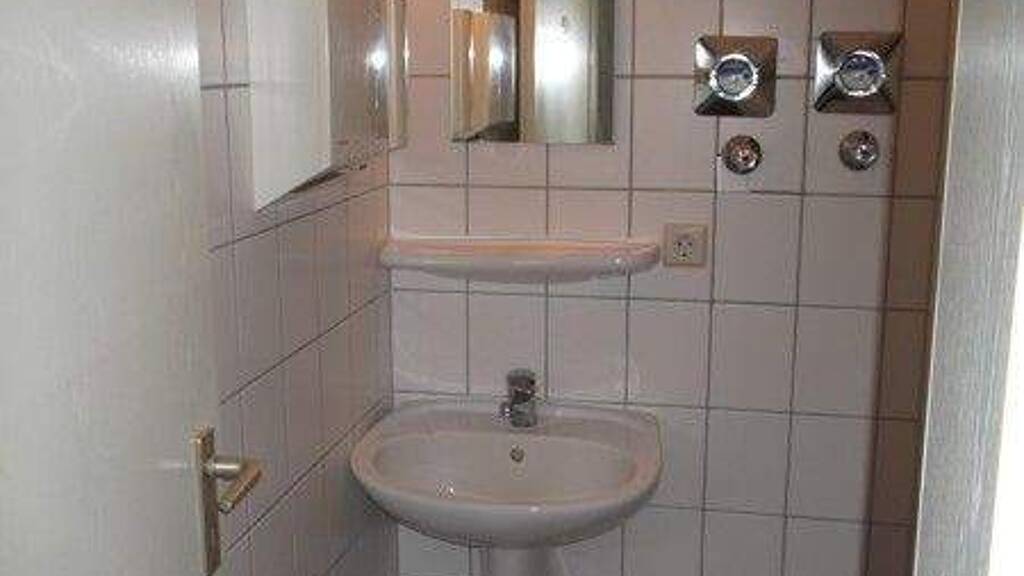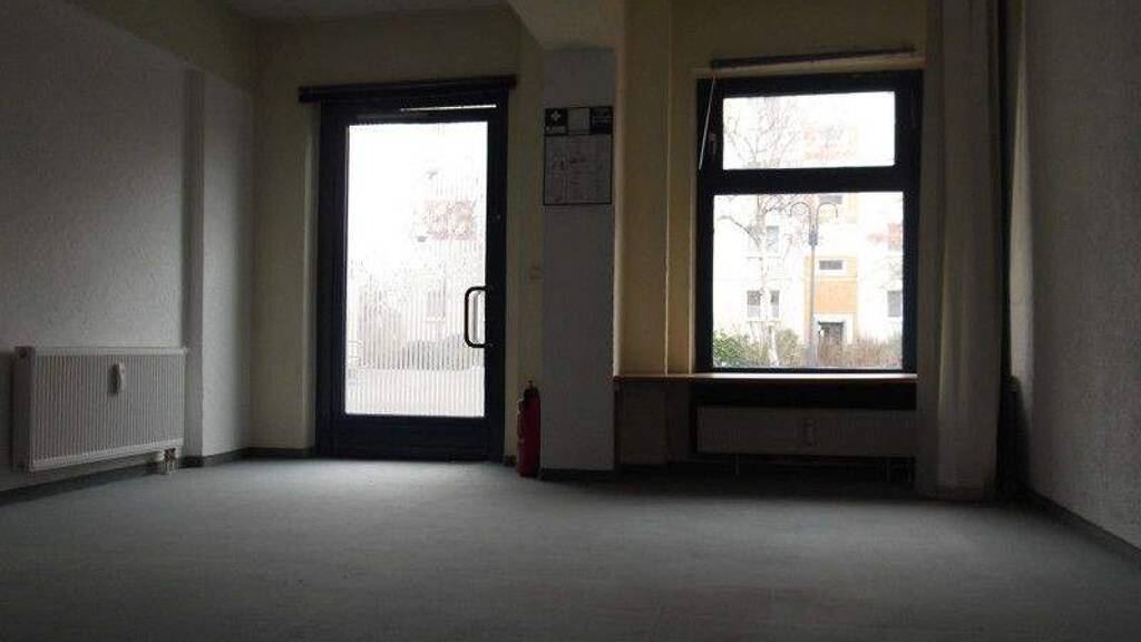 Die Gewerbemietfläche liegt im Erdgeschoss eines Wohnhauses und verfügt über einen hellen Raum mit kleinem Schaufenster, einer Kochnische sowie einem WC-Raum mit Waschbecken.