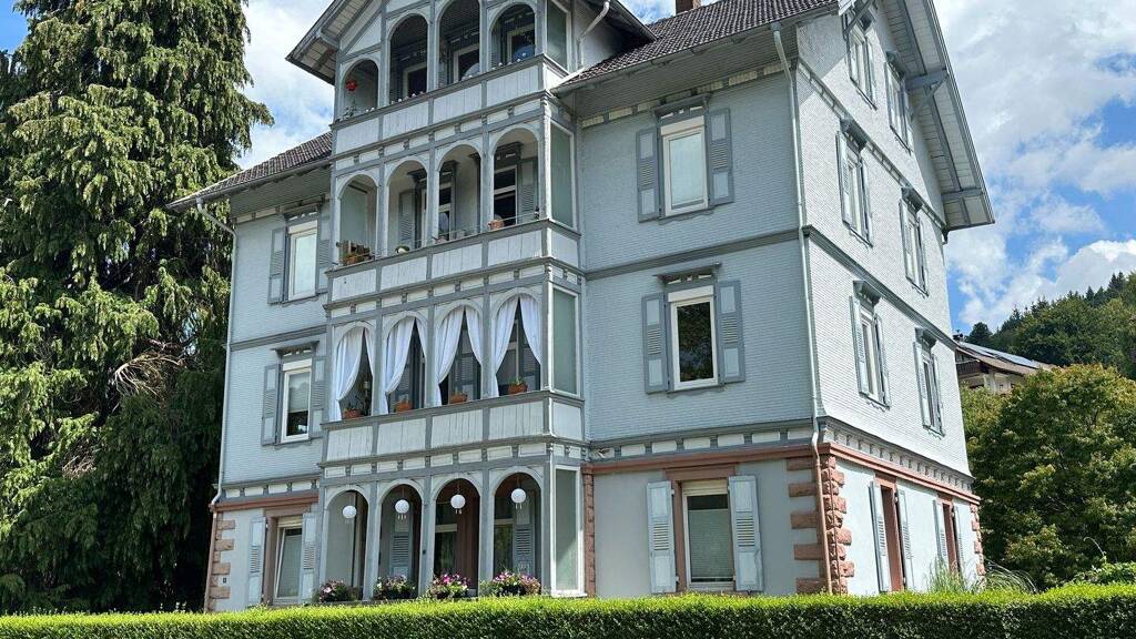 Auf einem fast 14 Ar großen Grundstück entstand 1903 dieses freistehende Haus in wunderschönem Bäderhausstil direkt gegenüber der Schweizer Wiese und Nähe zum Thermalbad.