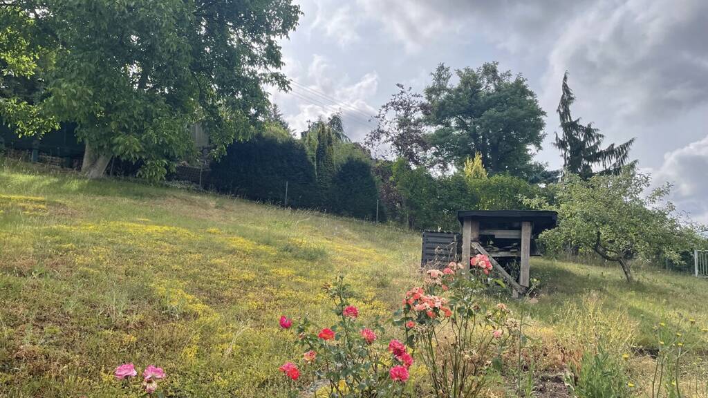 Das teilunterkellerte Haus bietet weitere Nutzflächen sowie Stauraum. Auf dem hanglagigen Grundstück befinden sich zwei Garagen sowie ein ehemaliges, großes Schwimmbecken, das mit etwas Aufwand wieder zum Leben erweckt oder kreativ umgestaltet werden kann - etwa zu einem Wasserbiotop oder Ruhegarten. Die Hanglage verleiht dem Garten eine besondere Struktur und macht ihn zu einer attraktiven Erholungsfläche mit Aussicht. Genießen Sie die Ruhe am grünen Stadtrand und den freien Blick über das Langenberger Umland, der Ihnen dauerhaft erhalten bleibt.