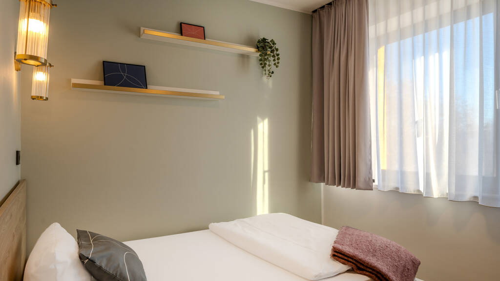 Die Apartments der Kategorie "The Base" sind Studios mit 20m² -23m², zu finden vom EG bis ins 4. OG. Ausgestattet mit Queen-size Bett (140cm), Flachbild-TV, Schreibtisch, großzügigem Kleiderschrank und weiteren schlauen Stauraumlösungen. Badezimmer mit Regendusche und eine komplett ausgestattete Küchenzeile mit Wasserkocher, Mikrowelle, 2 Kochplatten sowie Kühlschrank mit Gefrierfach.