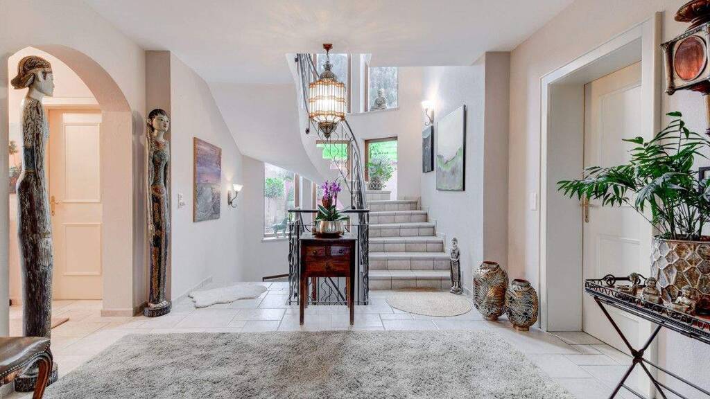 Im Untergeschoss erwartet Sie eine komplett ausgestattete Gäste- / Einliegerwohnung, ein Fitnessraum, ein Tanzraum und ein Wellnessbereich mit Sauna. Ein Atelier bietet zusätzlichen Raum für kreative Entfaltung.