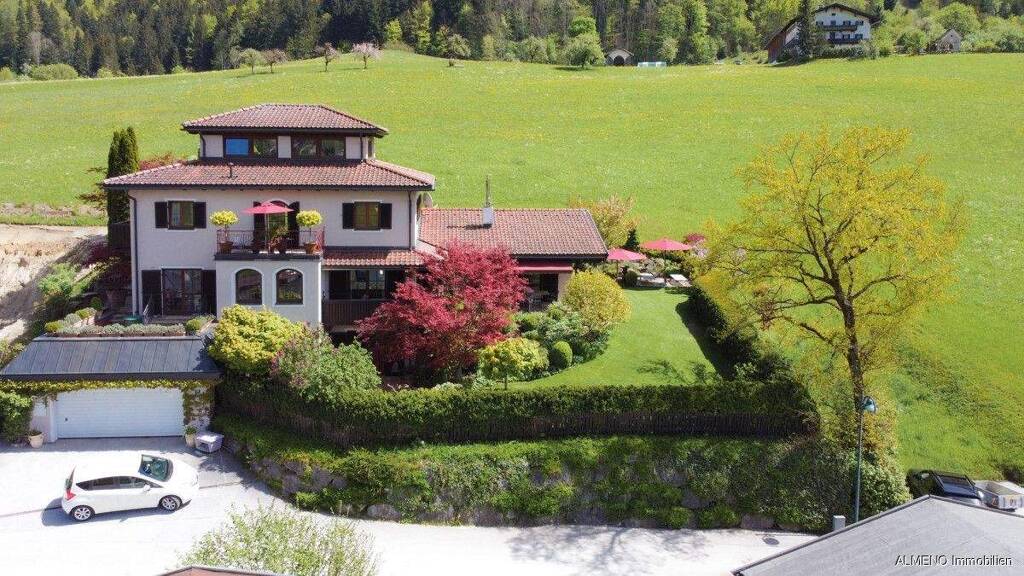 Willkommen in Ihrer Traumvilla im toskanisch-iberischen Stil, eingebettet in die malerische Landschaft des Thierseetales bei Kufstein. Dieses exklusive Anwesen, erbaut im Jahr 2000, erstreckt sich über eine Gesamtfläche von ca. 515 m² auf einem Grundstück von ca. 830 m².