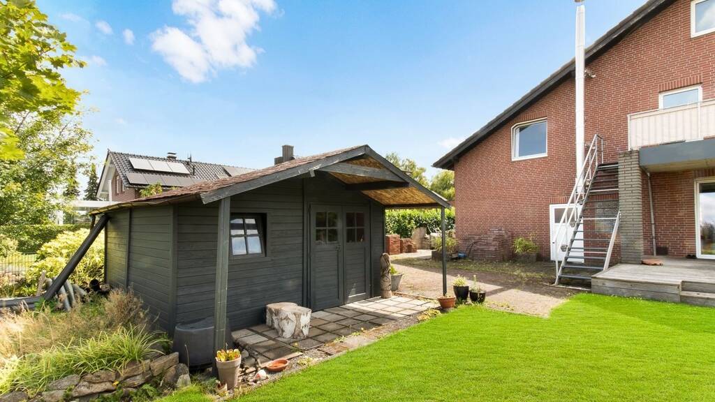 Der große, schön angelegte Garten mit Gartenhäuschen lädt zum Spielen und/oder Entspannen ein. Ein Carport und weitere PKW-Abstellmöglichkeiten sind vorhanden.