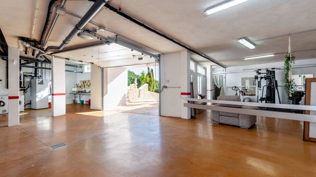 Weitere Ausstattungsmerkmale: Fußbodenheizung, Solarpaneele, Aluminiumfenster, Doppelverglasung, automatische Gartenbewässerung, Eichentüren, Fliesen porcellanico, elektrische Rollläden, Klimaanlage warm/kalt, Einbauschränke, Einbauküche ohne Elektrogräte, Telefon, Alarmanlage, SAT-TV, automatische Tore, Video Gegensprechanlage, Tiefgarage für 4 Autos, Pool 11 m x 5 m sowie Gästeapartment unter dem Pool mit separatem Zugang.